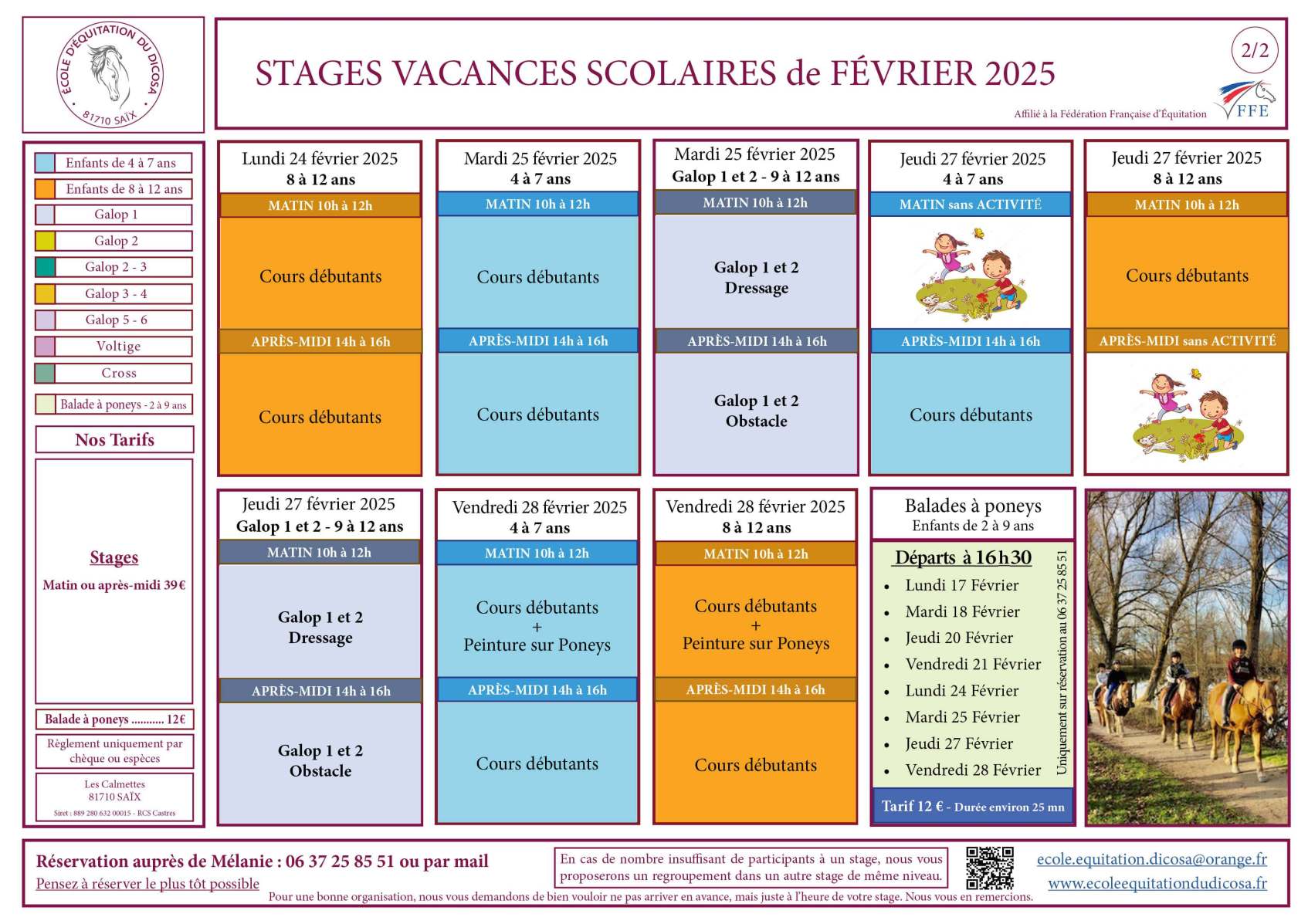 Pensez à reserver le plus tôt possible, par mail ecole.equitation.dicosa@orange.fr