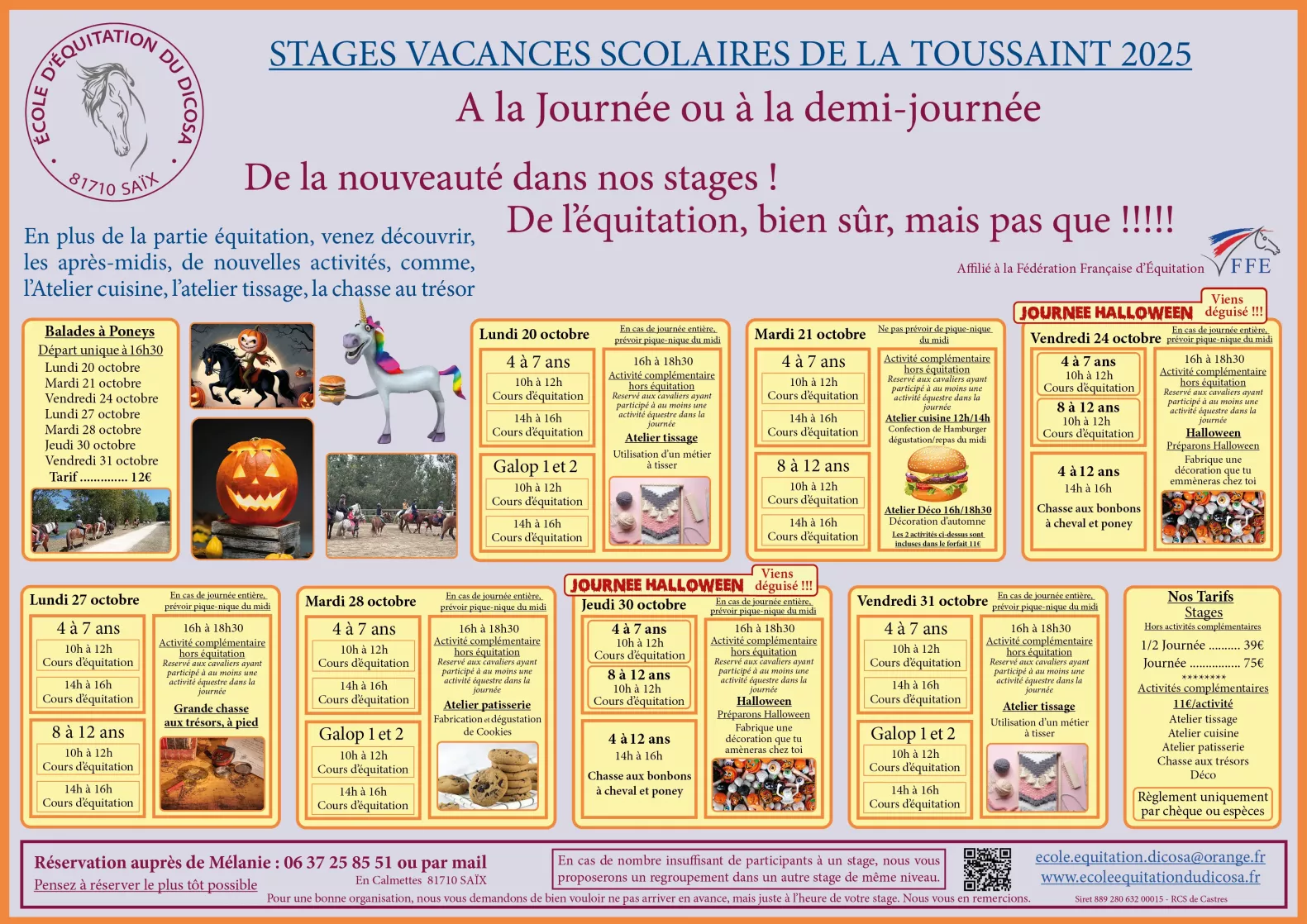 Pensez à reserver le plus tôt possible, par mail ecole.equitation.dicosa@orange.fr